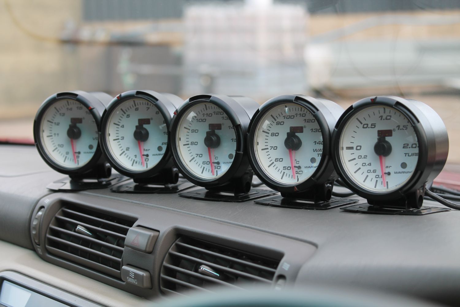 Aftermarket Autogauge Stepmaster gauges (boost, water temp, oil temp, oil pressure and battery voltage)